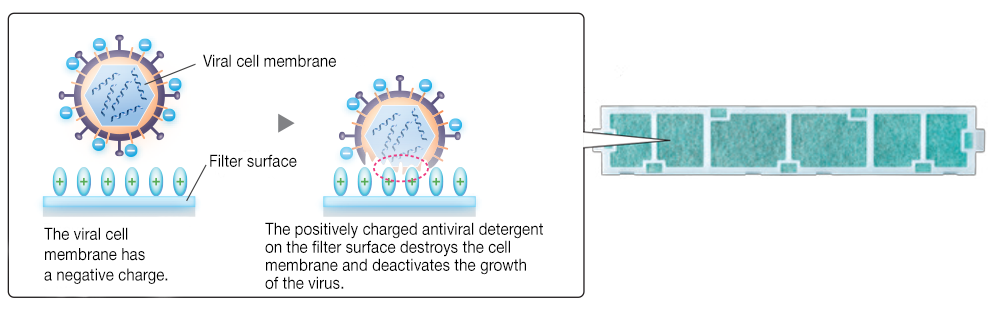Purifies the air indoors with an advanced V-Blocking filter that neutralizes bacteria, viruses, allergens, dust and mold.