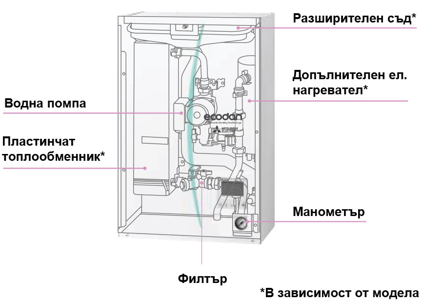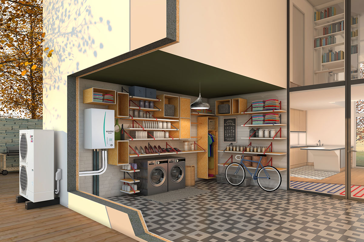 The indoor unit Hydrobox provides all of the needed main elements and electronics for control and offers a really good solution for heating and cooling, suitable for both new buildings and renovation. Its advantages include simplified graphic control, energy saving, emergency electric heaters and optional outdoor DHW tank.