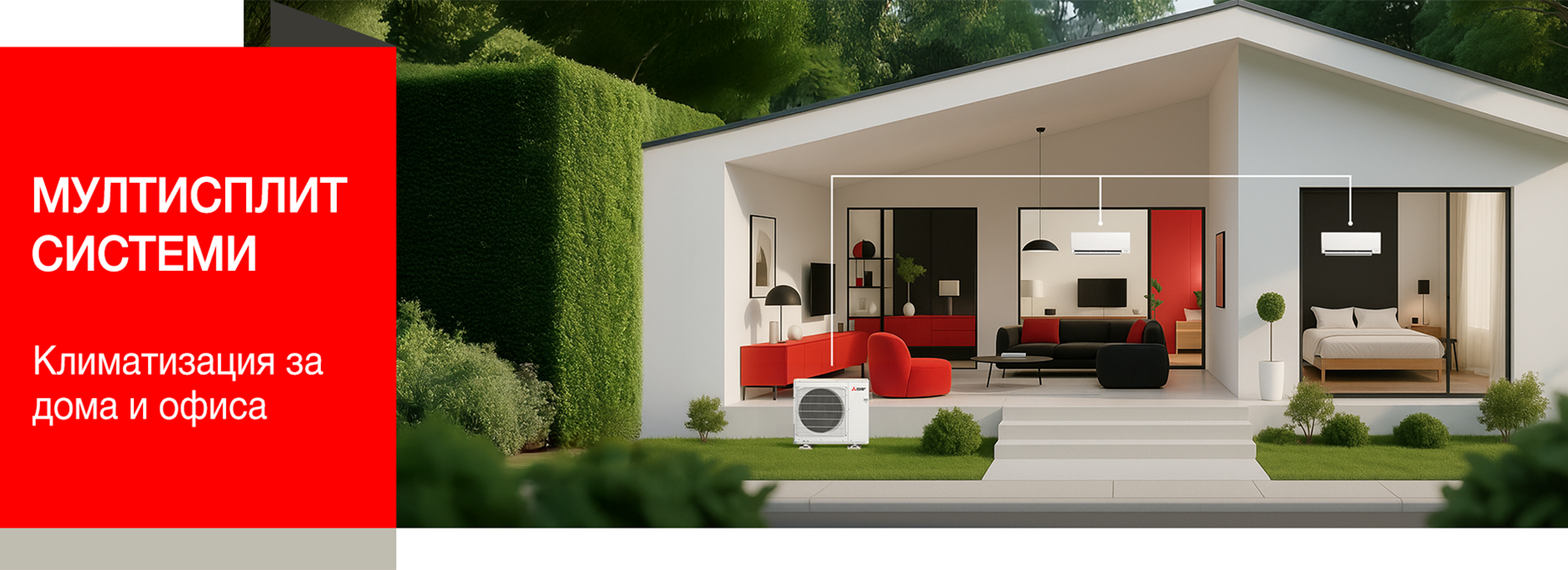 MultiSplit стемата позволява независимо управление на температурата във всяко помещение, в един режим на работа.