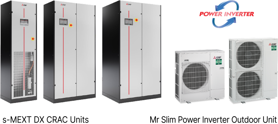 Сплит системата за охлаждане включва вътрешно тяло s-MEXT – прецизен климатизатор, свързано с външно тяло Mr Slim Power Inverter. Резултатът е пълна инверторна сплит система, проектирана по най-високи стандарти за качество и предназначена за най-надеждните IT среди.