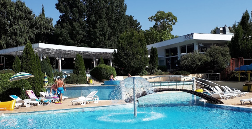 Хотел „.com“ се намира на 950 метра от плажа на Албена. Само на няколко минути пеша от хотел .com е центъра на курортния комплекс. Хотелът разполага с 327 модерно обзаведени стаи с телефон, сателитна телевизия, WC/душ и балкон или тераса. Гостите на хотела ползват безплатно голям каскаден басейн с джакузи и две водни пързалки.